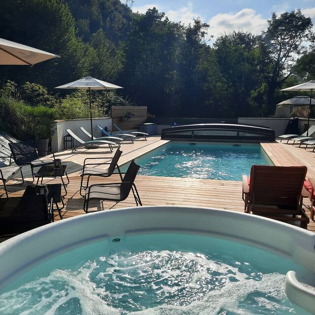 Détente au bord de la piscine chauffée, dans les 2 jacuzzi's vue sur les montagnes ou au sauna après une randonnée...