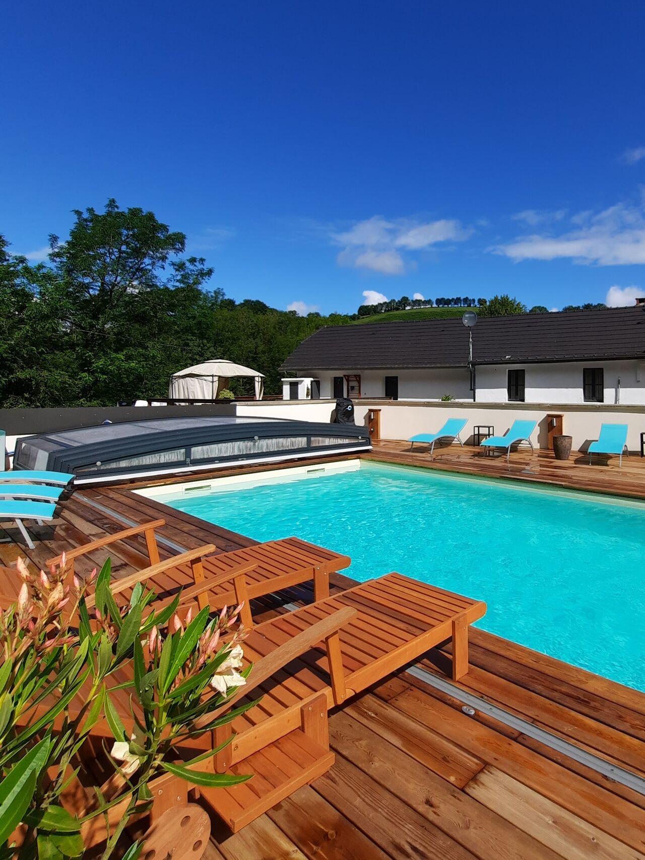piscine chauffée avec abri pour les baignades couvertes hors saison,